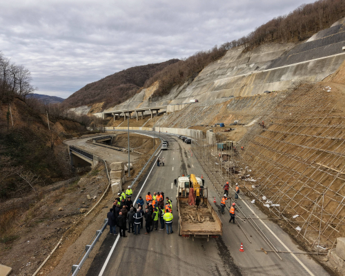 რევაზ სოხაძე რიკოთის მაგისტრალის დარჩენილი 4 კმ-იანი მონაკვეთის მშენებლობის პროგრესსს ადგილზე გაეცნო