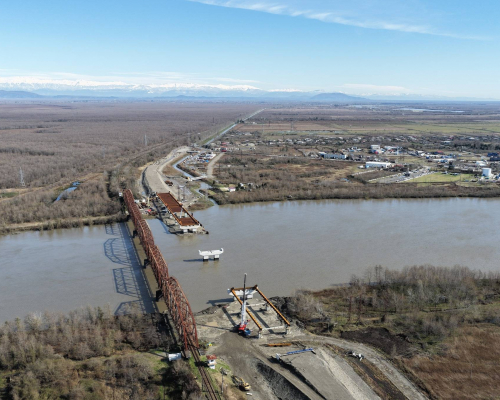 20 თებერვალი 2026მდინარეზე შენდება ფოლად-რკინა-ბეტონის 8-მალიანი ხიდი, რომლის სიგრძე 436 მეტრია